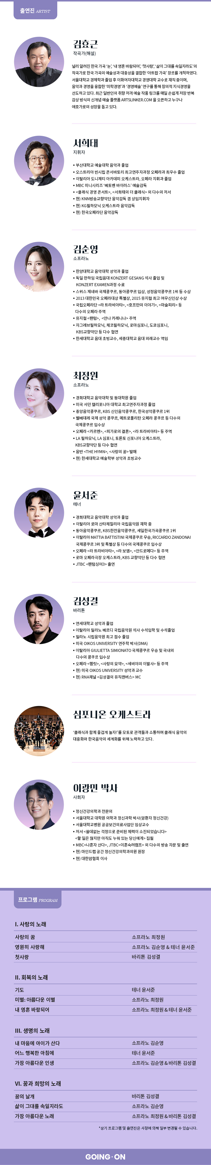 지연 관객 입장 시에는 예매하신 좌석에서 관람이 어려울 수 있으며, 다른 관람객의 관람에 방해되지 않도록 안내원의 유도에 따라주시기 바랍니다. - 악장과 악장 사이의 박수는 곡의 흐름을 방해하니, 한 곡이 모두 끝나고 열렬한 환호와 박수를 부탁드립니다.