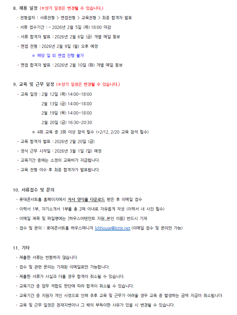 롯데콘서트홀 하우스어텐던트 (공연장 안내원) 모집 공고 |