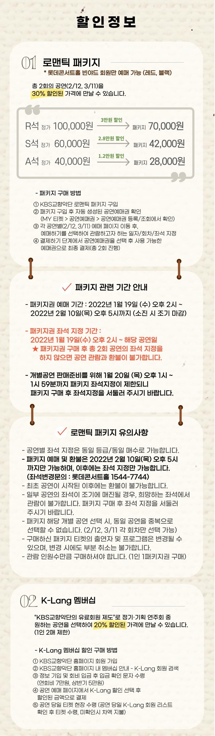 (1인 2매 / KBS교향악단 로맨틱 패키지 구매 고객에 한함, 티켓 수령시 리스트 확인, 미확인 시 차액 지불)