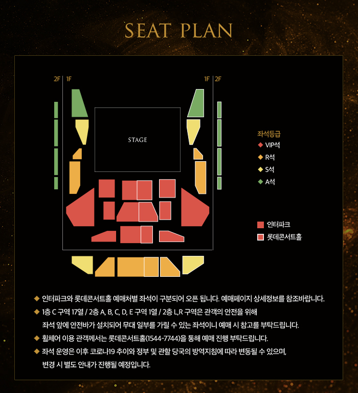 ※ 1층 C구역 17열 / 2층 A, B, C, D, E구역 1열 / 2층 L,R구역은 관객의 안전을 위해