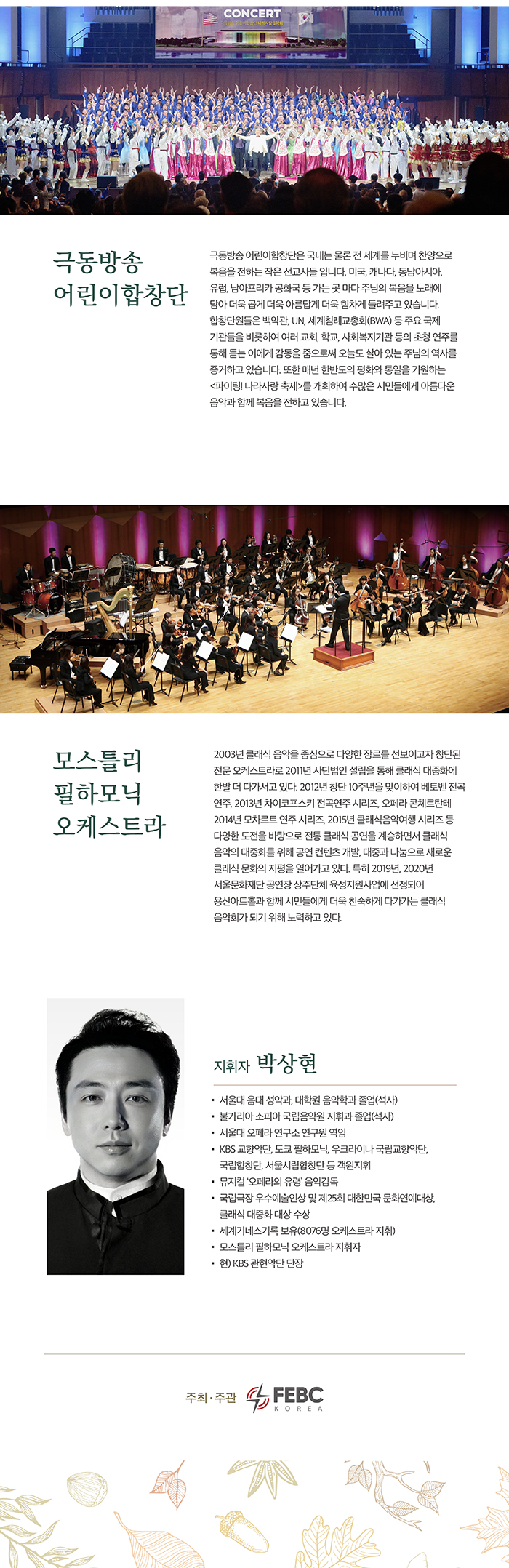 - 대중가수 정훈희, 테너 박지민, 소프라노 신델라, 베이스 함석헌, 극동방송 연합 어린이합창단