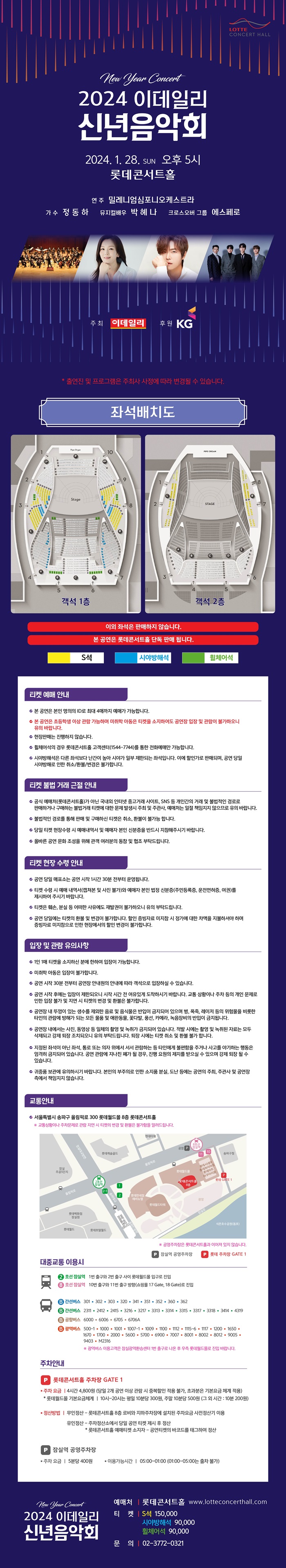 지연 관객 입장 시에는 예매하신 좌석에서 관람이 어려울 수 있으며, 다른 관람객의 관람에 방해되지 않도록 안내원의 유도에 따라주시기 바랍니다. - 악장과 악장 사이의 박수는 곡의 흐름을 방해하니, 한 곡이 모두 끝나고 열렬한 환호와 박수를 부탁드립니다.