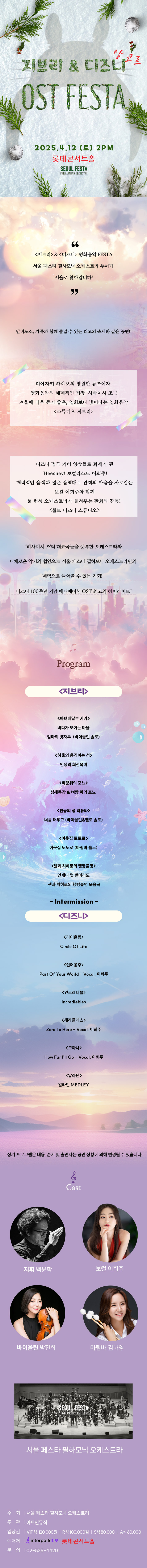 - 공연 중에는 휴대전화의 진동음도 공연 관람에 방해가 되므로 휴대전화의 전원을 반드시 꺼 주시기 바랍니다.