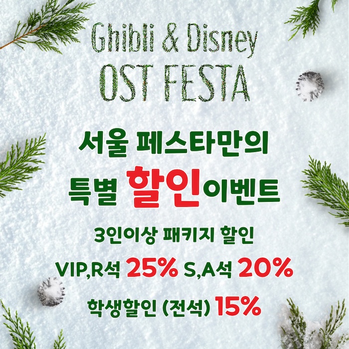 장애인 1~3급 50% 할인 (전석 / 동반 1인까지 / 티켓 수령 시 복지카드 확인)