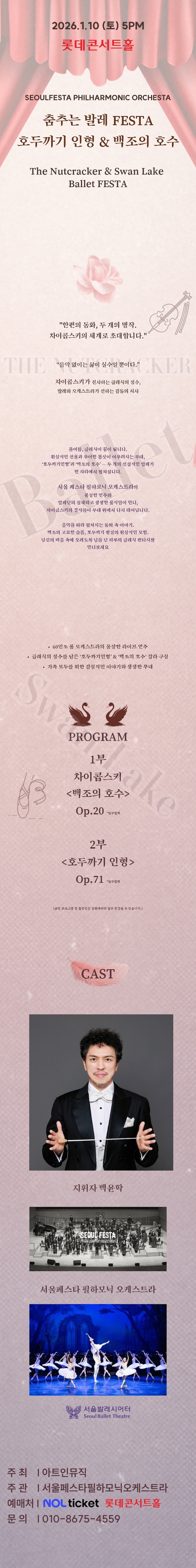 - 공연 중에는 휴대전화의 진동음도 공연 관람에 방해가 되므로 휴대전화의 전원을 반드시 꺼 주시기 바랍니다.