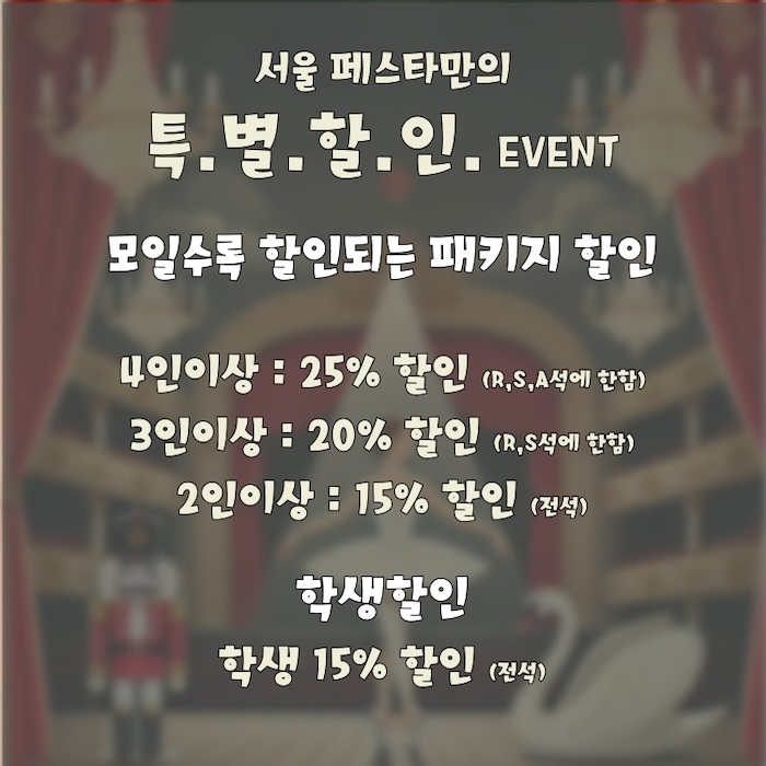 할인가 또는 최저 등급으로 판매되며, 공연 당일 시야방해로 인한 취소/환불/변경은 불가합니다.