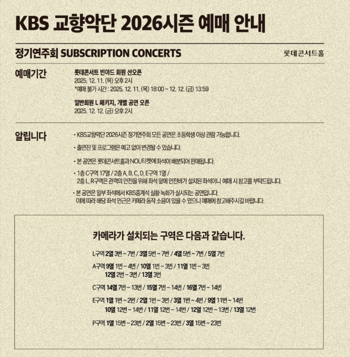 [티켓오픈 일정] KBS교향악단 2026시즌 L패키지 / 개별공연