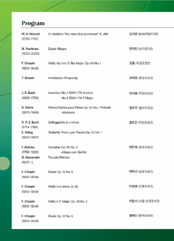 국민대학교 피아노 페다고지 제자연주회 "Junior Gala Concert"
