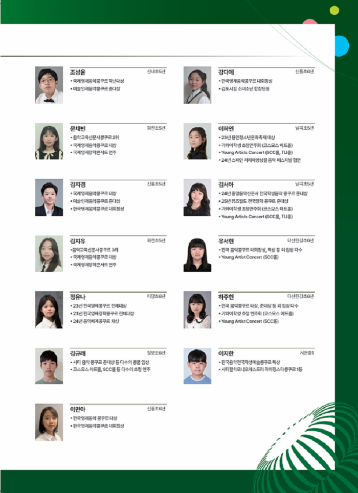 - 김시온 안리빈 오율 조하연 최서윤 정우주 윤도진 박은영 박하선 이성표 이윤서 홍예인 이시온 양채은 조성율 문채빈 김지겸 김지유 정유나 김규래 이민아 강다혜 이하연 김서아 유서현 하주현 이규림