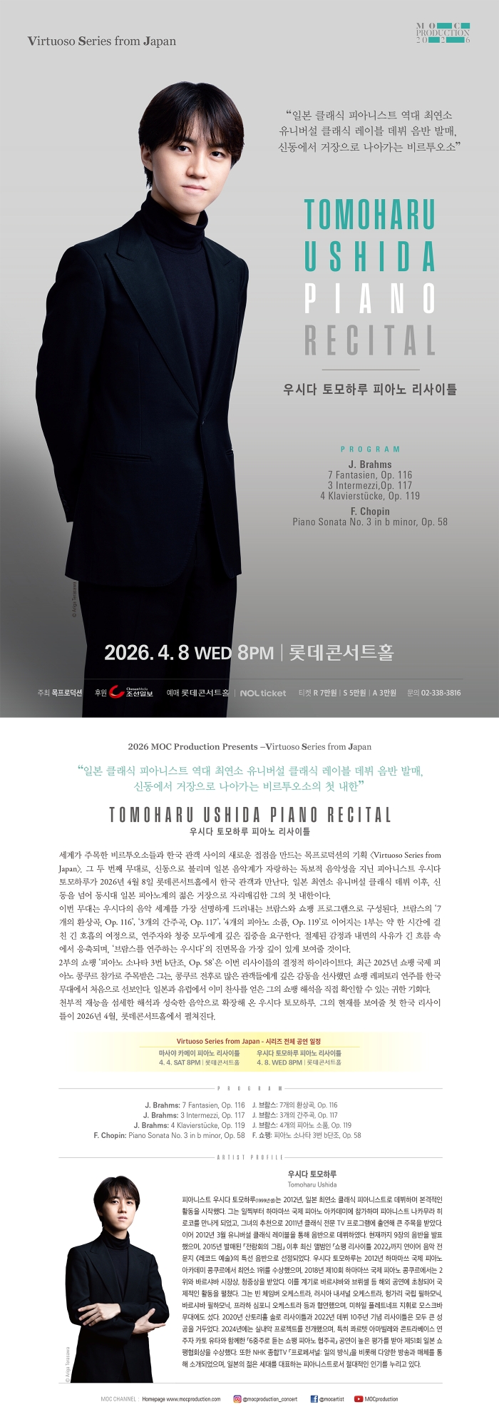 ※ 본 공연은 ‘롯데콘서트홀 / NOL 티켓’에서 연동 판매되며, 예매 가능한 좌석이 동일합니다.