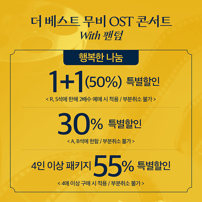 행복한 나눔 1+1(50%) 특별할인 (R, S석에 한해 2배수 예매 시 적용 / 부분취소 불가)