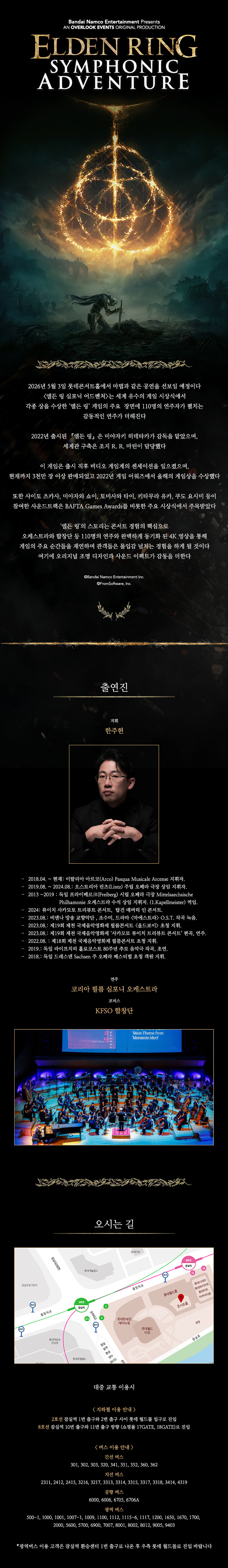지연 관객 입장 시에는 예매하신 좌석에서 관람이 어려울 수 있으며, 다른 관람객의 관람에 방해되지 않도록 안내원의 유도에 따라주시기 바랍니다. - 악장과 악장 사이의 박수는 곡의 흐름을 방해하니, 한 곡이 모두 끝나고 열렬한 환호와 박수를 부탁드립니다.