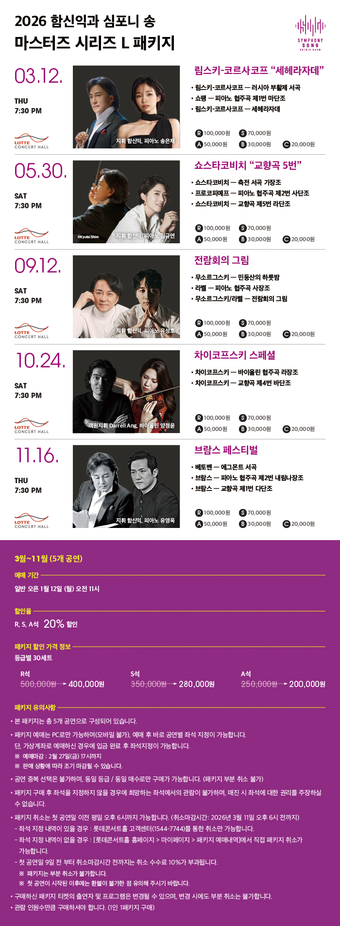 구매하신 패키지 티켓의 출연자 및 프로그램은 변경될 수 있으며, 변경 시에도 부분 취소는